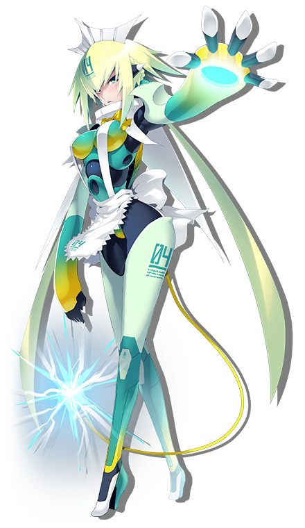 Emera is a Shooter. She is a Bombergirl manufactured for battle. Having disappeared from the spotlight, she now returns to participate in the Bomber Battle in a custom maid build. Emera is an android just like Silva and the two are considered sisters.