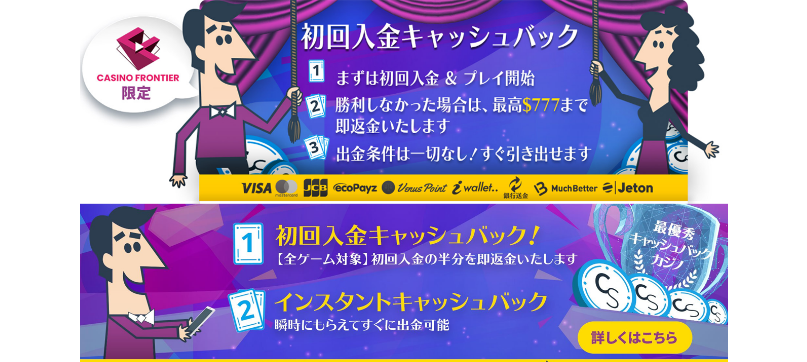 カジノフロンティアからの新規登録限定で、初回入金キャッシュバックが最大500ドルから777ドルへ!!