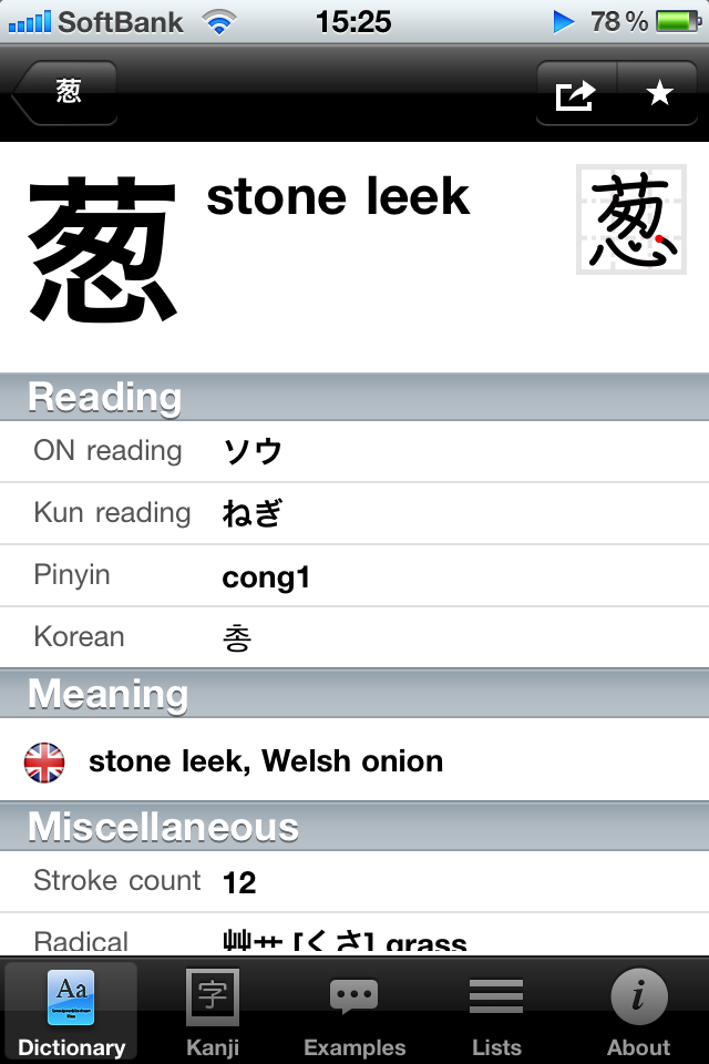 無料の日本語辞書。外国語話者が、日本語を勉強するためのもののようだが、おそろしい多機能がまったくの無料で使える。漢字を表示すると、各国語への翻訳、例文訳はもちろん、構成部分や筆順までもアニメーションで表示される。いったいどれほどの手間暇をかけられたのか。できればいくらかお支払いしたいほど。