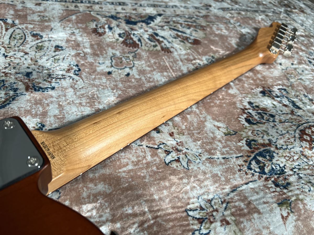ネック材には希少な桜材を使用。弦振動を安定させて均一なサウンドを出すべくさらに希少な柾目に拘りオーダーしました。