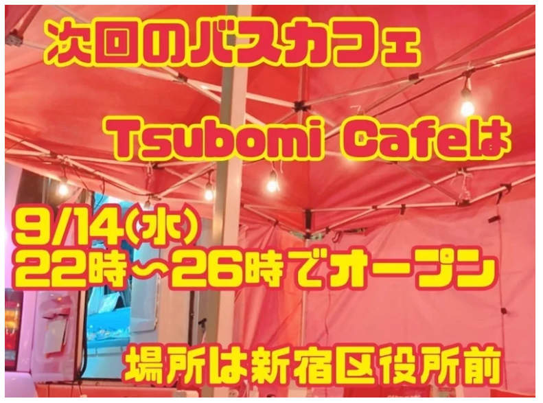 空「ナイス説明セリフ。まずはこれを見てほしい。Colaboのバスカフェ事業は新宿区役所前で22時~26時に行われている」