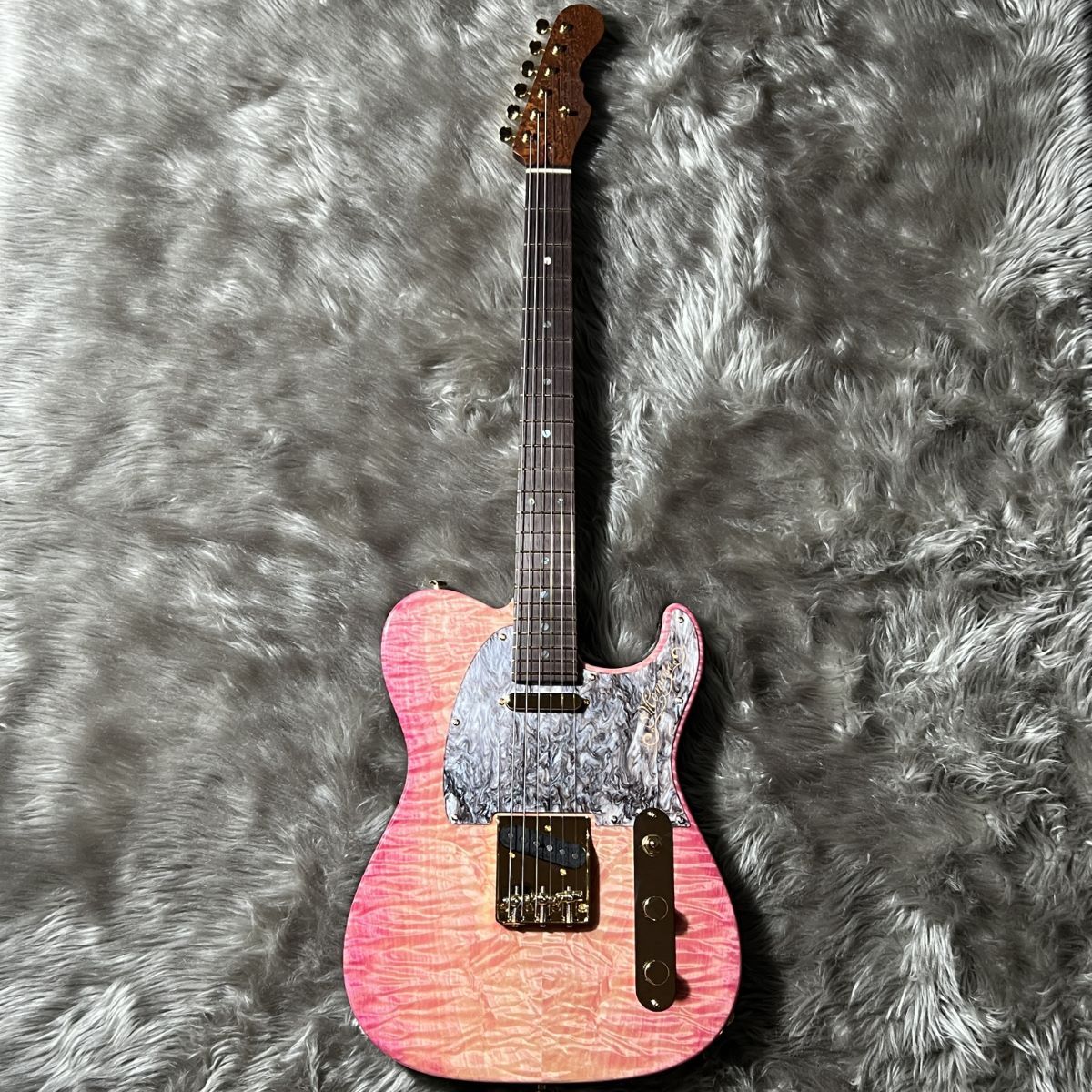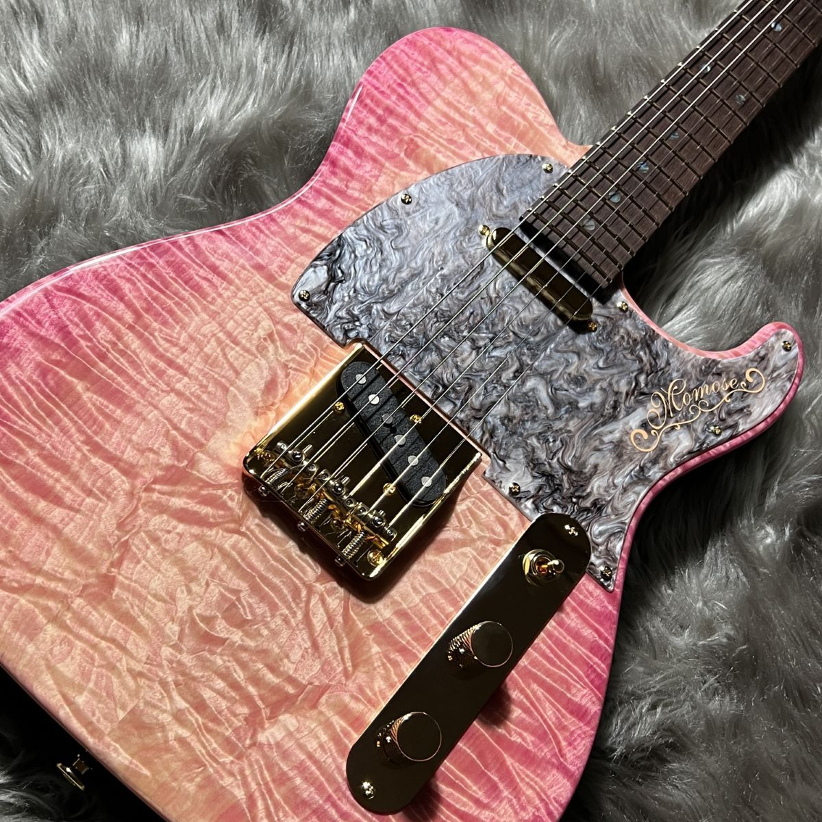 塗装職人によって鮮やかなピンクにカラーリングされたボディとゴールドに輝くハードウェアによって、ステージ映え間違いなしのルックスに仕上がりました。