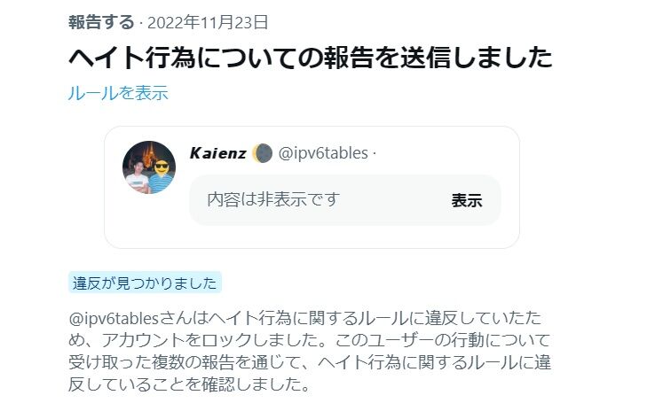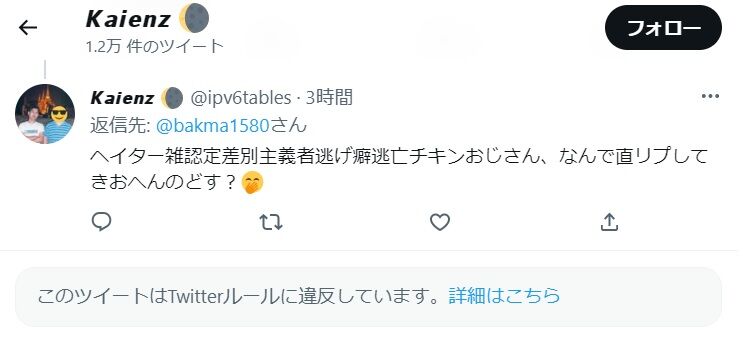 2022年の10月に、Twitterルール違反をやらかしたkaienz。