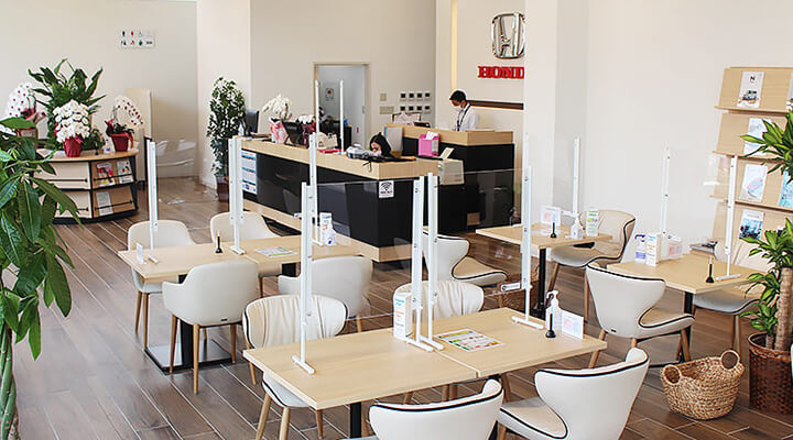 感染拡大予防のため、ショールーム入り口に体温計と消毒液を設置しております。 ショールーム内も各テーブルにアクリル板の設置や席の間隔を広くとっており、安全に快適にお過ごしいただけるよう取り組んでおります。お客様にも感染対策のご協力をお願いしております。ご理解とご協力をお願いいたします。