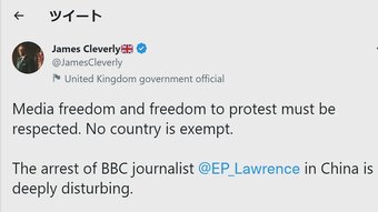 英・クレバリー外相「深く憂慮」 BBC記者中国で一時拘束に