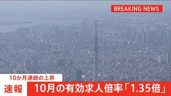 【速報】今年10月の有効求人倍率「1.35倍」上昇傾向続く 全国旅行支援で宿泊業・飲食業で求人増加