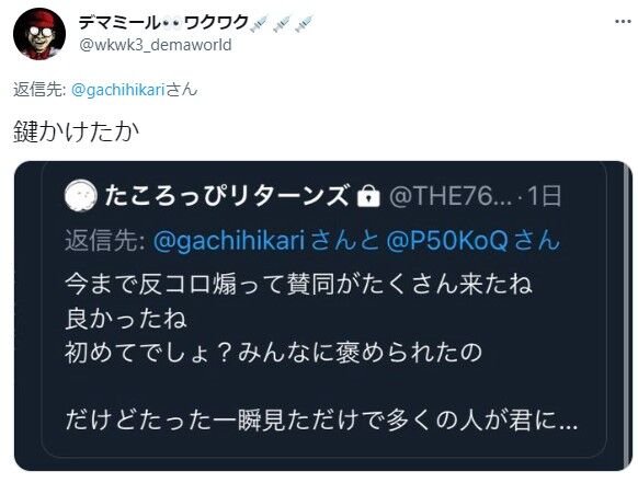 このコロッケという人は最初に闇子に突っかかってきて、仲間を呼び込んで闇子とバトルさせておいて、自分は鍵垢でなに高見の見物を決めこんでんの?って話です。