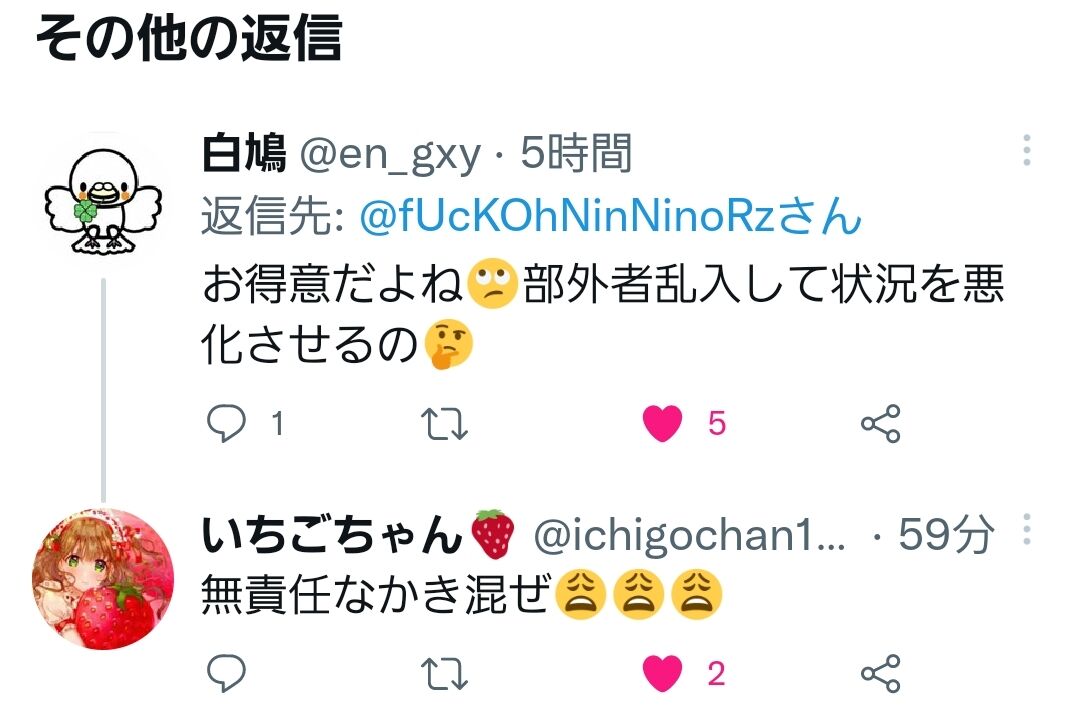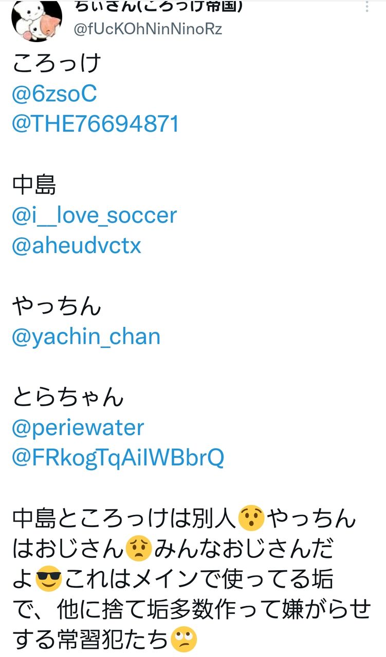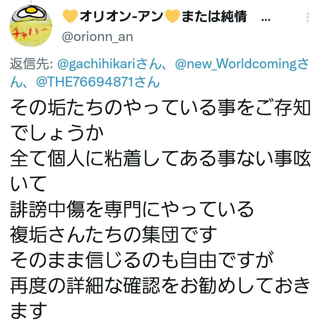 あのスペースの一件から内輪もめ多いし、集団でデマ叩き界隈の畑を荒らしてる奴らだと