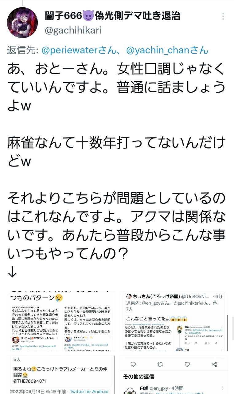 なので、今回闇子氏の麻雀の件については、ちぃさんたちの言い分が腑に落ちる