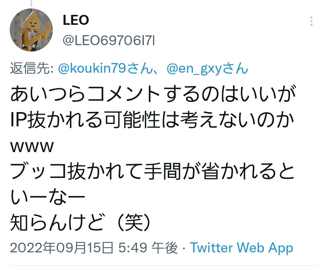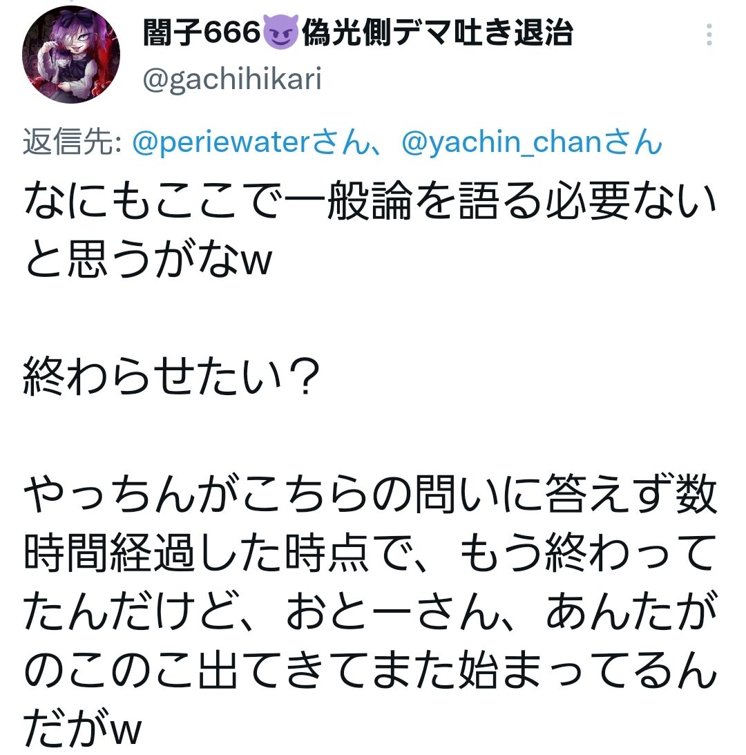 自分らの正義をふりかざしてるだけで、絡んで来ておきながら反論も自分都合のこの程度