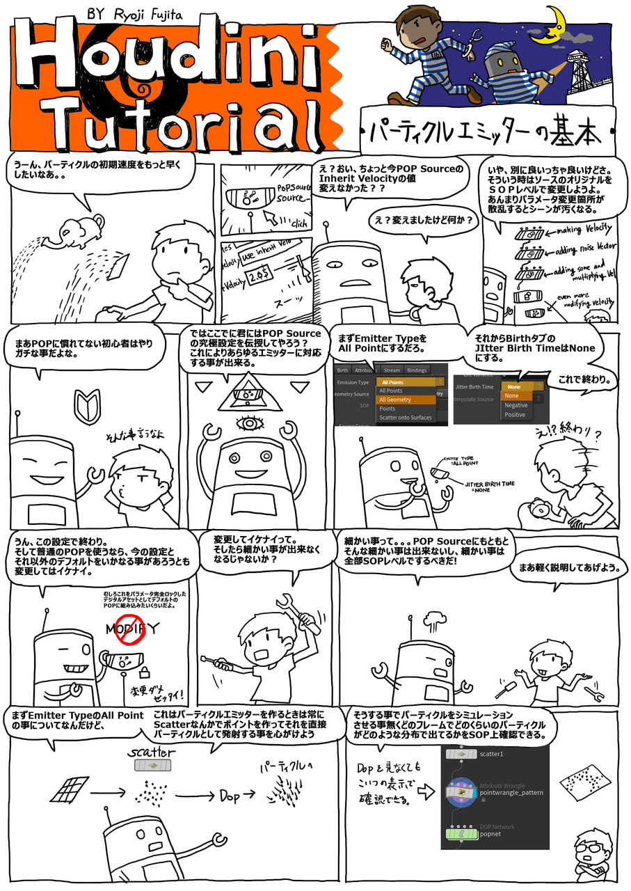 マンガ Houdini チュートリアル ーーエミッター補間ーー