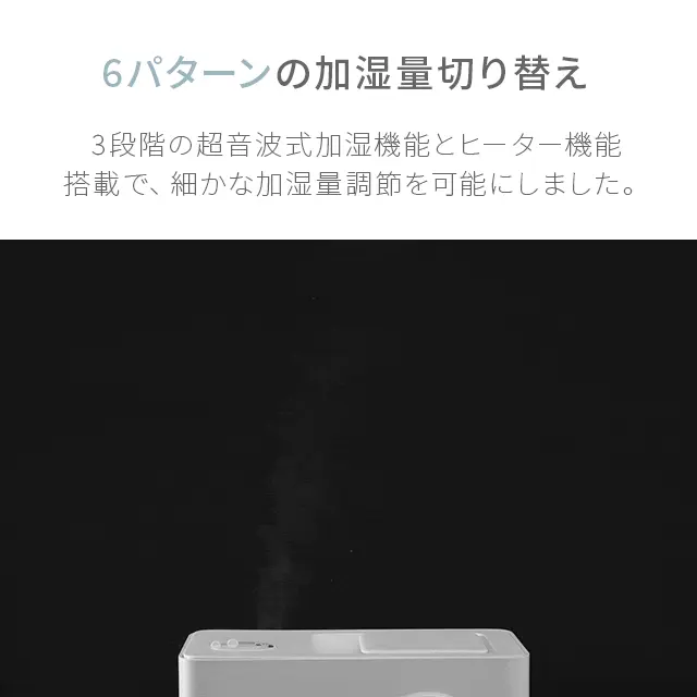 6パターンの加湿量切り替えと自動加湿調整機能搭載