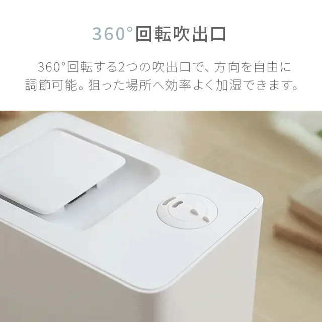 また、人の髪の毛よりも細かい15μmのミストを採用。自然蒸発しやすく床や加湿器周辺が濡れにくく快適に使用いただけます。