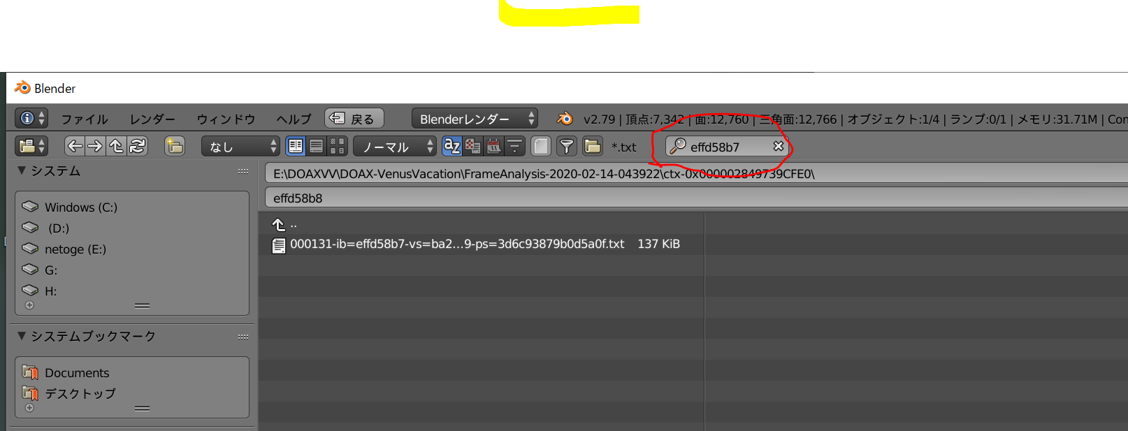 まとめて消えちゃったアドレスで検索をかける。今回は7c02ffeb。
