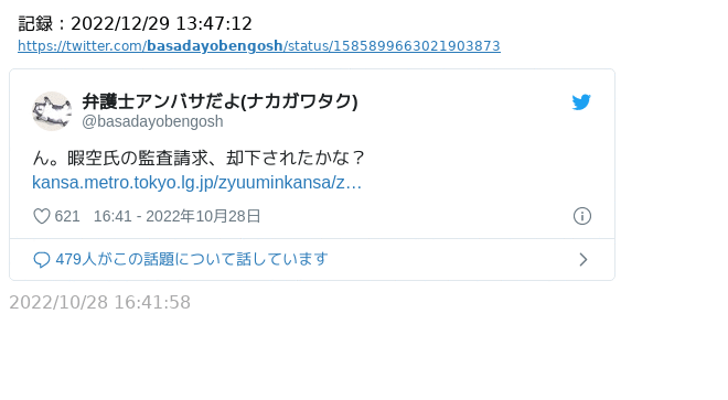 弁護士アンバサ氏の暇空茜氏の監査請求結果に対するコメントが聞きたいですね https://twitter.com/basadayobengosh/status/1585899663021903873 …