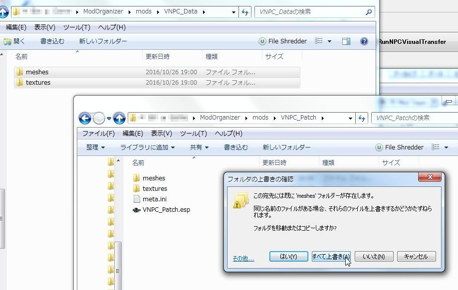 VNPC_Dataフォルダ内の meshes と textures を、VNPC_Patchフォルダへ移動。