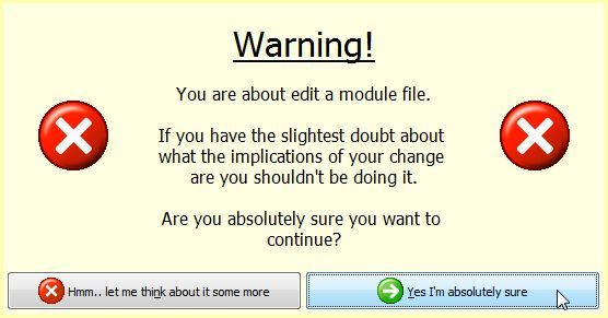 右側をダブルクリックすると、警告されるので緑色の「Yes,...(はいもちろん続けます)」を選択。