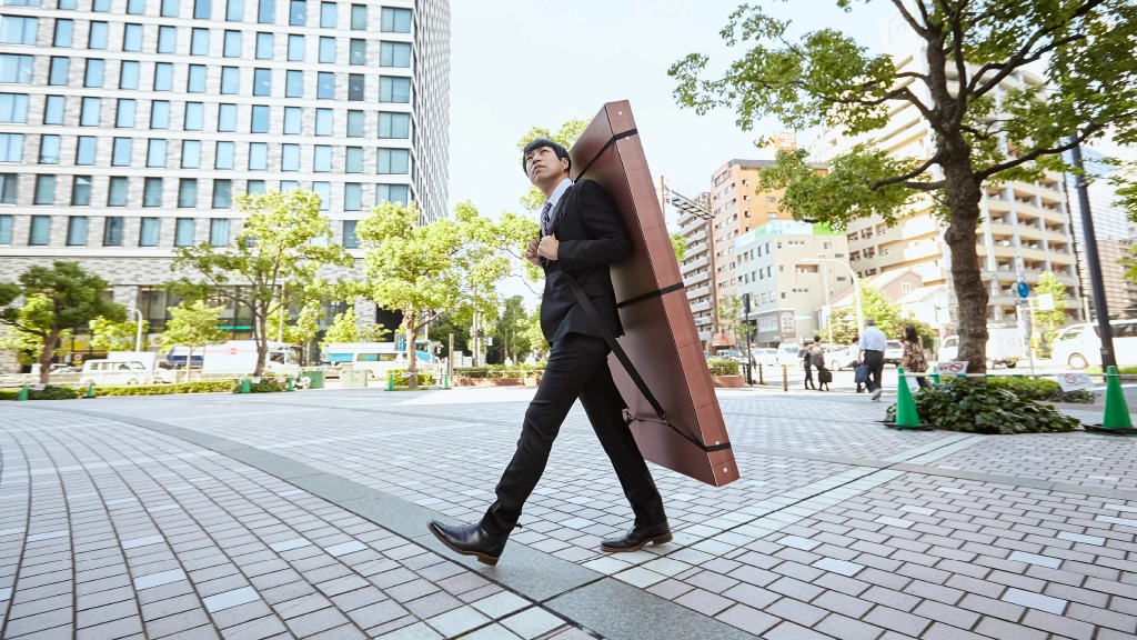 「社長が会社を背負って東京に行く」というギャグを体現するための装置を設計から担当しました。