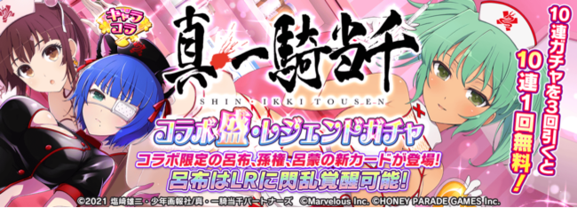 また、「真・一騎当千コラボステップアップガチャ」でピックアップされているカードが登場する「真・一騎当千コラボガチャ」も同時開催!