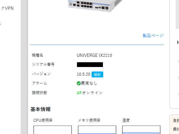 ただ、注意点としては、IX2215用のファームウェアがVer10.2以降でないと、OCNバーチャルコネクトに対応していません。