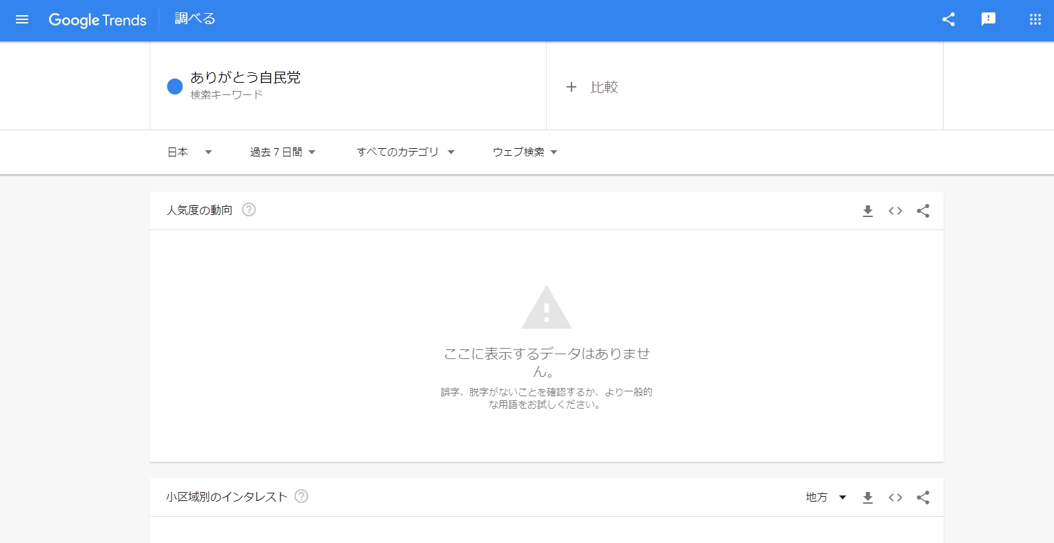 - 報道「若者の間で『ありがとう自民党』という皮肉ワードが流行」Googleトレンド「誰も使ってないぞ」