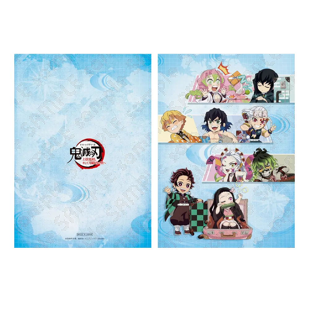 ワールドツアーをする「鬼滅の刃」のキャラクター達の描き下ろしみにきゃらイラストでデザインされたA4サイズのクリアファイルです。