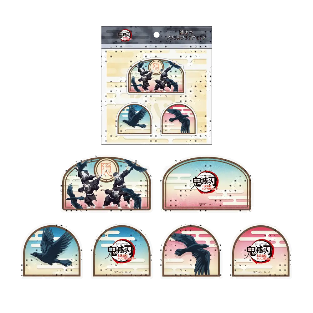 「ワールドツアー上映『鬼滅の刃』上弦集結、そして刀鍛冶の里へ」にて描かれた隠達でデザインされたアクリルクリップセットです。