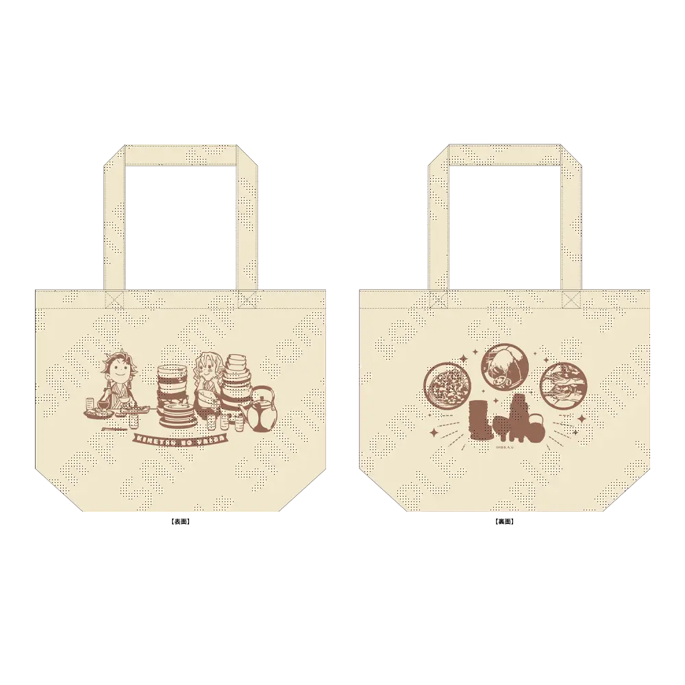 「ワールドツアー上映『鬼滅の刃』上弦集結、そして刀鍛冶の里へ」にて描かれた竈門炭治郎、甘露寺蜜璃と料理でデザインされたランチバッグです。