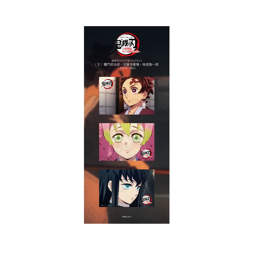 「ワールドツアー上映『鬼滅の刃』上弦集結、そして刀鍛冶の里へ」の場面写を使用したスクエア缶バッジセットです。