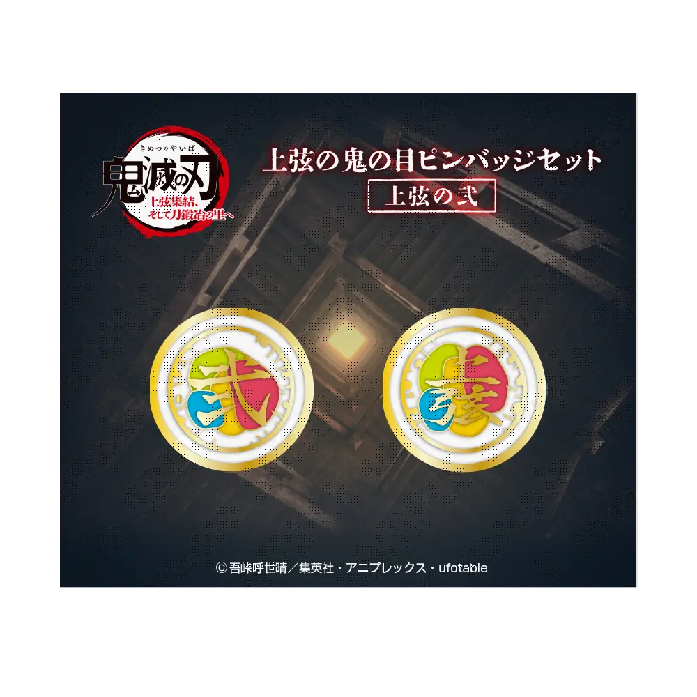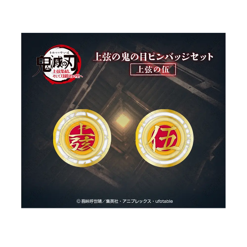「ワールドツアー上映『鬼滅の刃』上弦集結、そして刀鍛冶の里へ」に登場した「上弦の鬼」達の印象的な目の模様でデザインされたピンバッジセットです。