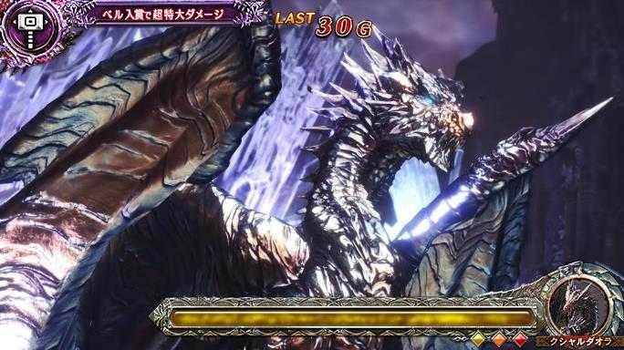 | 389 | 歴戦王クエスト(CZ) | 「クシャルダオラ」 防具青20G, 武器緑 選択 討伐失敗 最終ゲーム レア役以外での謎復活 |