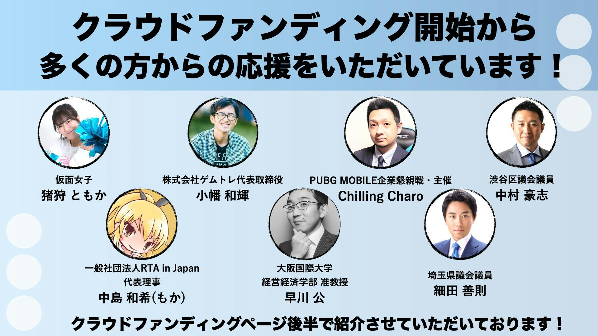 支援者の方から、「こんなアイデアを実現して欲しい」「こんなタイトルのeスポーツを一緒にやりたい」というようなご意見を出していただき、実現に向けた活動報告自体をコンテンツとして、共感の輪を広げていきます!
