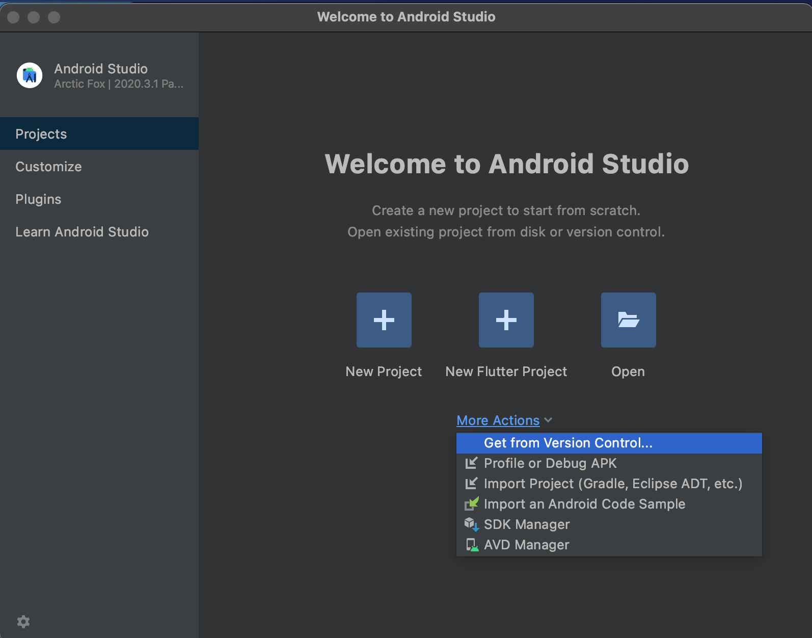 ↑「More Actions」から「SDK Manager」を開きます。