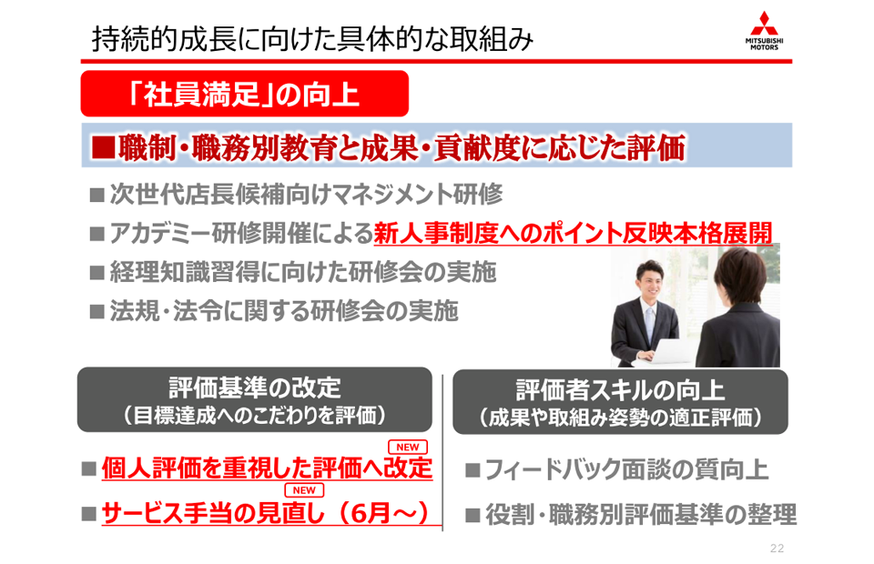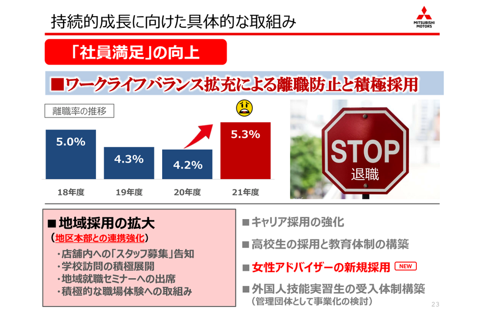 | 取扱車種 | ●三菱自動車 全車種取扱 <乗用車> アウトランダーPHEV、エクリプス クロスPHEV、デリカD:5、エクリプス クロス、RVR、デリカD:2、デリカD:2カスタム、ミラージュ <軽自動車> eKクロス EV(電気自動車)、eKクロス、eKワゴン、eKクロス スペース、eKスペース、タウンボックス <商用車> ミニキャブミーブ(電気自動車)、ミニキャブバン、ミニキャブトラック <福祉車(ハーティーラン)および各種特装車> |