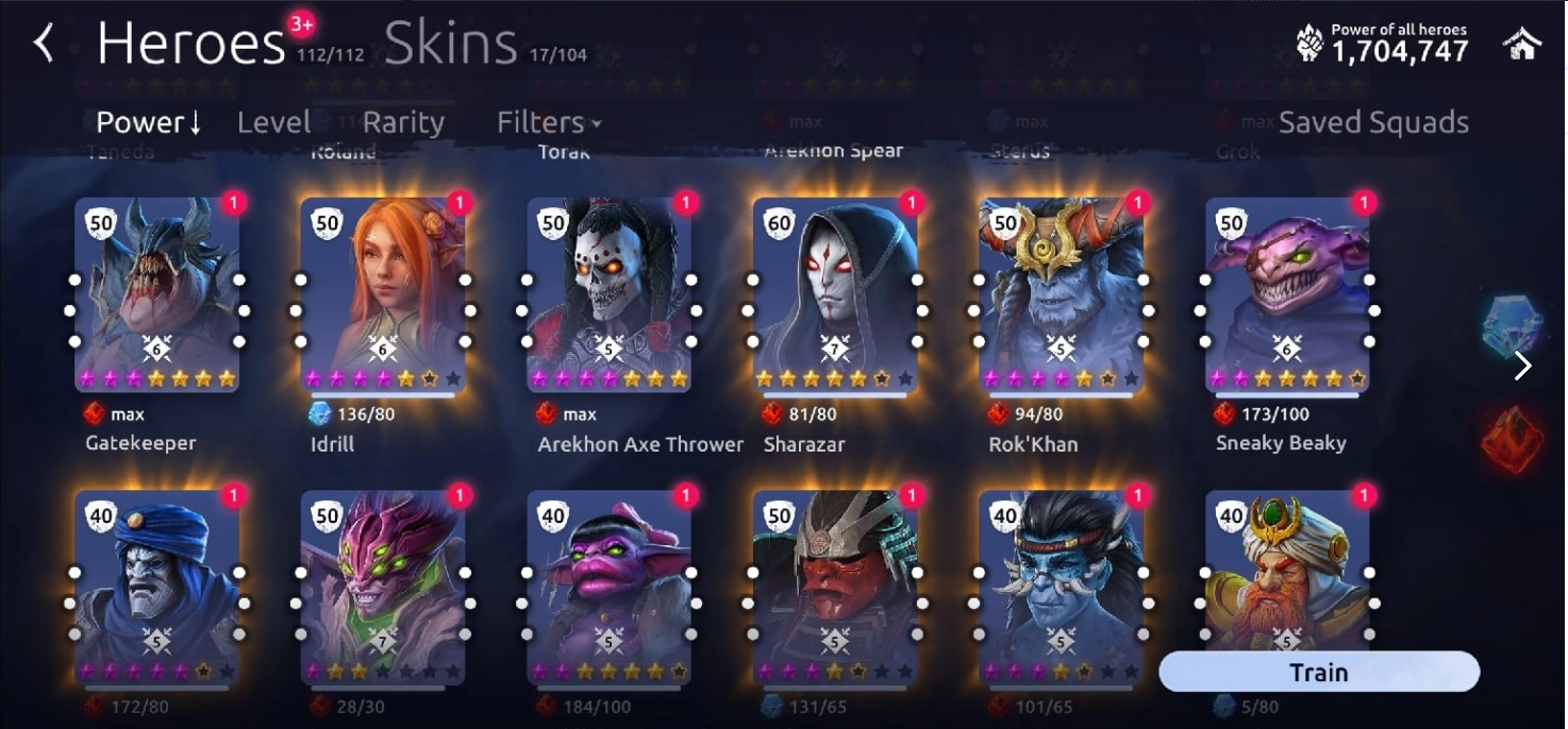 By default, the heroes are sorted from strongest to weakest. By clicking on the filter, you can change the sorting from weaker to stronger, and the weaker heroes will be at the top. If you have heroes with inactive Arcane Stars, they will always be at the top of the list. Also at the top of the list will be heroes marked as favorite heroes.