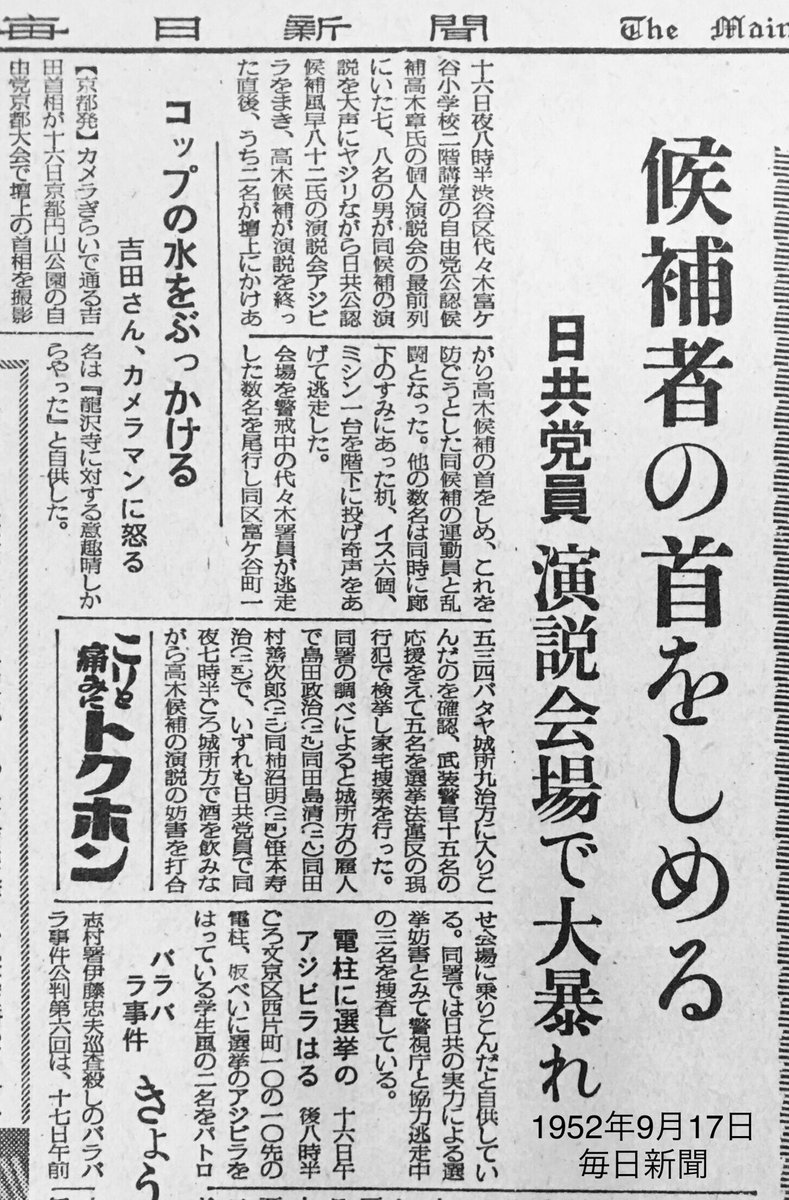 日本共産党の山下芳生副委員長・参院議員は、吉村洋文大阪府知事が18日、大阪府吹田(すいた)市で行われた大阪維新の会の街頭演説の中で共産党を「独裁」などと攻撃したことに対し、同日直ちにツイッターで反論するとともに、19日の大阪市内での街頭演説の中で反論しました。