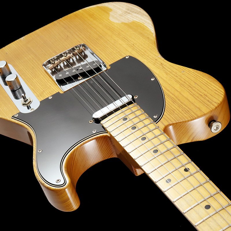 ボディ材は厳選されたアッシュ材、ネックには十分に日本の気候に合わせ加工調整されたメイプル指板&ネックの1950年スタイルのウッド・マテリアル。ネックグリップは握り込みやすいスリムネック、高さのある22F仕様により演奏性に優れています。フィニッシュはラッカー塗料を使用したヘヴィエイジド加工が施されており、貫禄のあるルックスに仕上げられています。ネックグリップはナットから12F付近まで塗装が剥がされており、木肌を感じる滑りの良いグリップ感です。