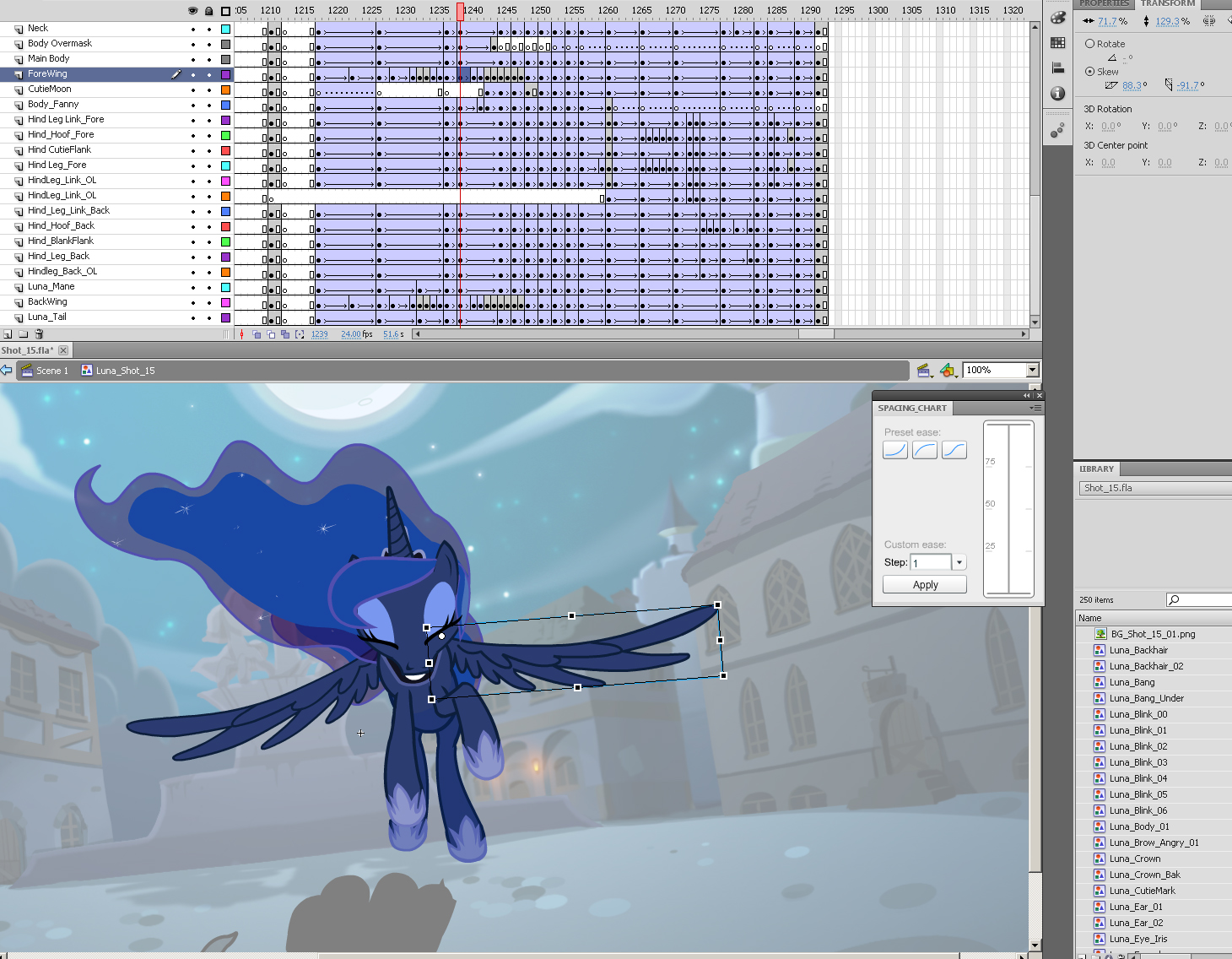 We did quite a nice amount of work today!  Plus I managed to finish an extra shot pertaining to Luna. It's the shot we refer to as 'Shot 8' where she makes a dive towards the camera.  Below is how as saw the sweet midnight-colored alicorn making sure nothing was out of place.