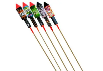 “英逆火箭,是其长技,能射数百丈,以坚木为尾,长八九尺,或丈许,受药之筒,长二尺,大三寸,以薄铜或马口铁为之,筒下旁环六孔以引火,箭尾之木,以铁罗丝紧贯于筒中,筒上又贯锐木尺许。木末或用铁如枪筒,内三之二受起火之药,三之一受爆竹横药,箭到药燃,筒轰迸裂,火即散飞,延烧营帐房屋。”