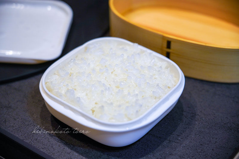 お弁当用のご飯は、いつも言ってますが冷凍ストックしているものを電子レンジで加熱解凍してから詰めています。