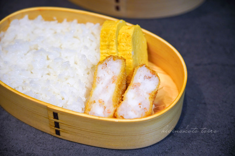 本日のお弁当、海老カツ弁当の出来上がり〜!!