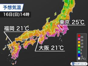 関東は昨日より大幅に気温上昇 東京など25℃以上の夏日予想の所も