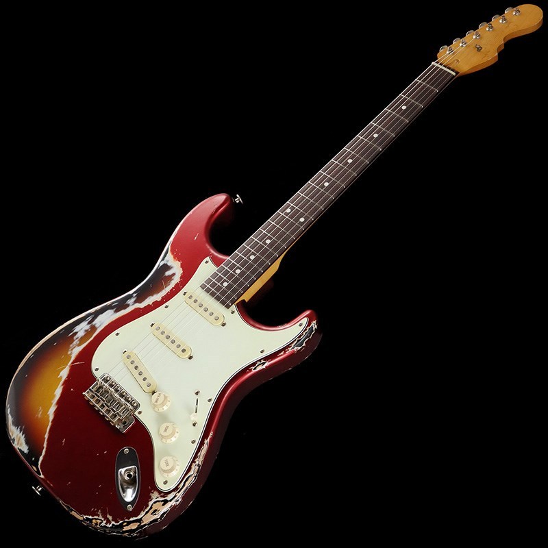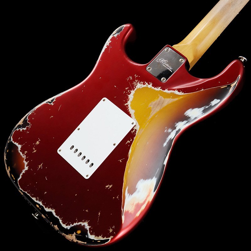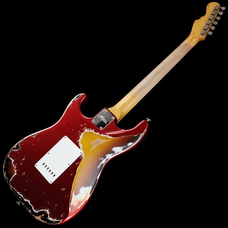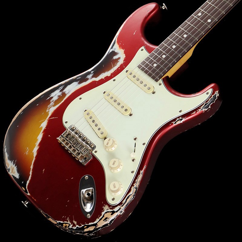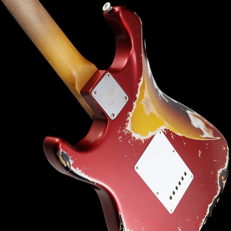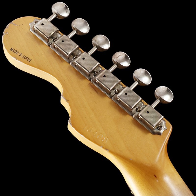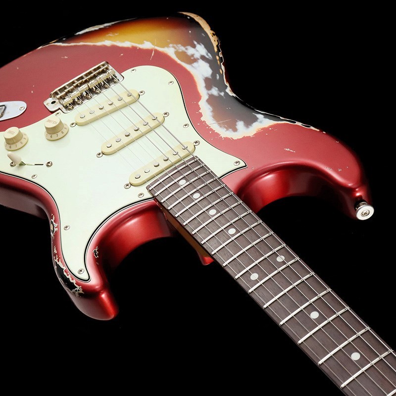ボディ材は厳選されたアルダー材、ネックには十分に日本の気候に合わせ加工調整されたローズウッド指板&メイプルネックの1960年スタイルのウッド・マテリアル。ネックグリップは握り込みやすいスリムネック、高さのある22F仕様により演奏性に優れています。フィニッシュはラッカー塗料を使用したヘヴィエイジド加工が施されており、キャンディアップルレッドのトップカラーから見えるサンバーストのマルチレイヤーによって、妖艶かつ貫禄のあるルックスに仕上げられています。ネックグリップはナットから12F付近まで塗装が剥がされており、木肌を感じる滑りの良いグリップ感です。