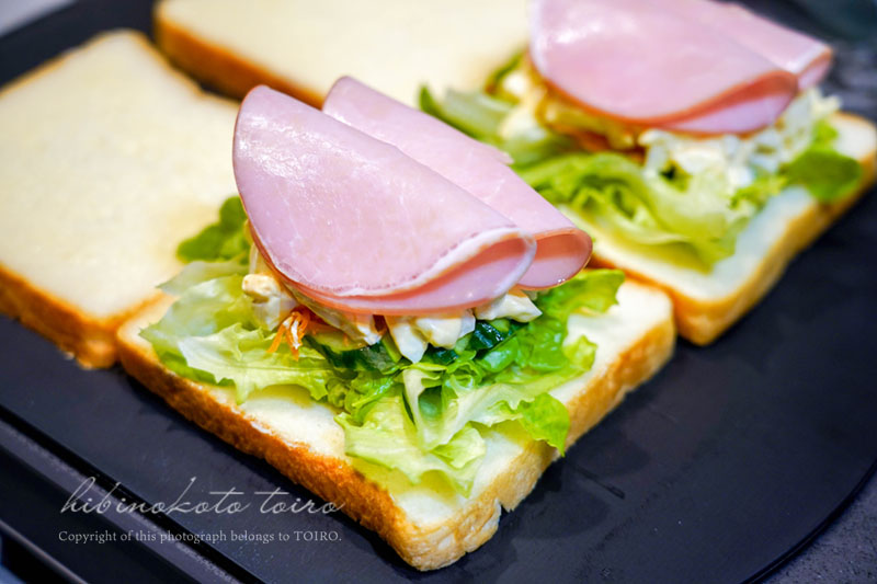ハムもっと入れてもよかったなって後で思ったんだけど、4枚入りだからつい2枚ずつとケチってしまった。笑
