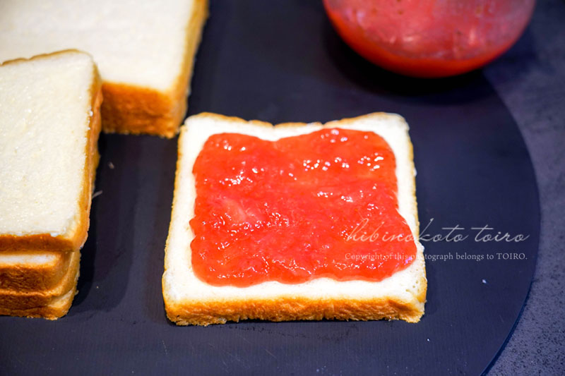 ちなみに、お食事サンドとは別にいちごジャムサンドも作りました。