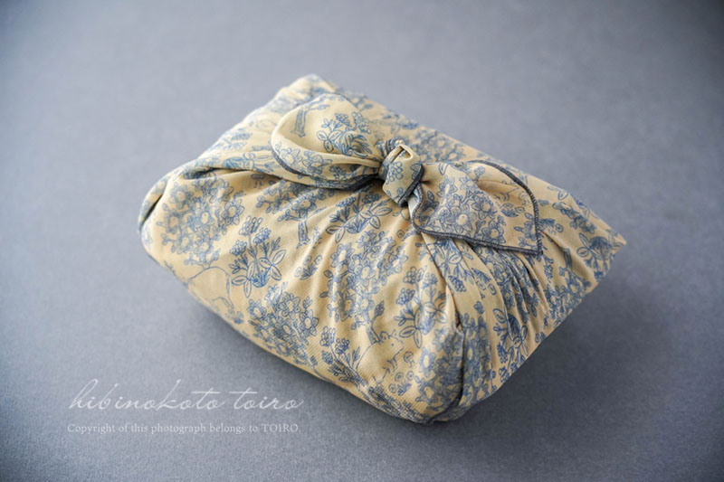 いつものお弁当袋には入らなかったので、大きめのランチクロスで包みました。