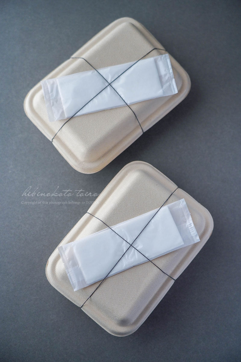 今日はおかず無しだけど、おかずがあればフォークも一緒に輪ゴムの下に挟むといいですね!