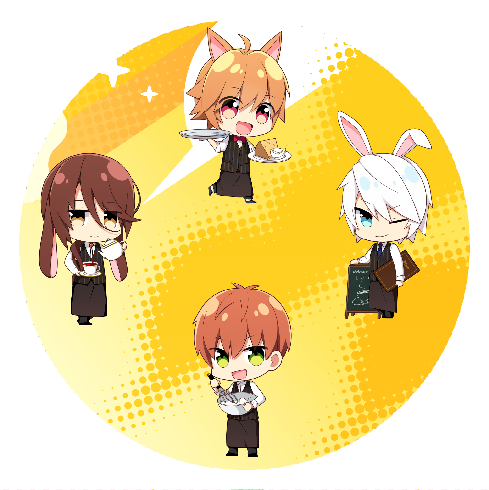 1129(Junky-Soft)@1129_degarashi4w agoらびらびの円盤印刷はロゴとかなしにキャラの可愛さを引き立てたいかなとちょっと思ってます。(きのはやいはなし……)このSDキャラ見てショコラは紅茶淹れるの得意なキャラでキャラメルが持ってるシフォンケーキは店の人気メニューという設定が生まれました。(本編に入ってくるかは……どうだろう)イラスト:すばら屋さん1