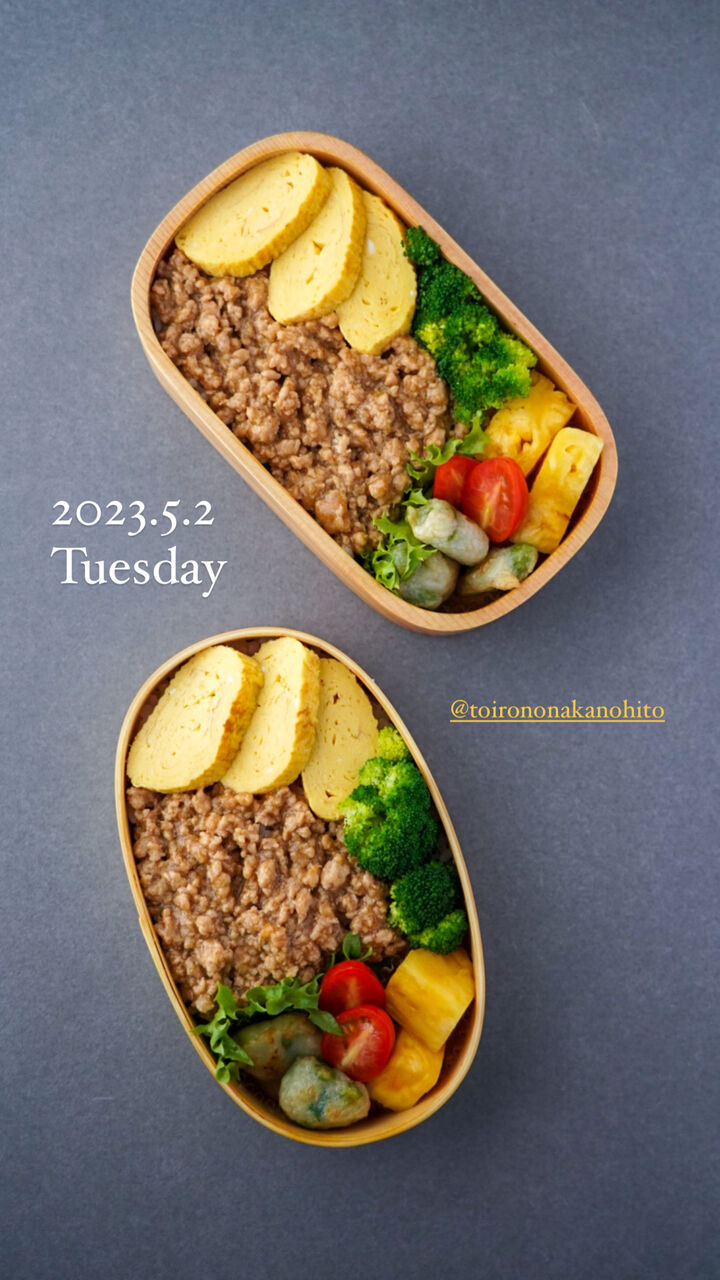私の鶏そぼろは水溶き片栗粉で水分にとろみをつけて仕上げるのでお弁当の時に食べやすいのです。