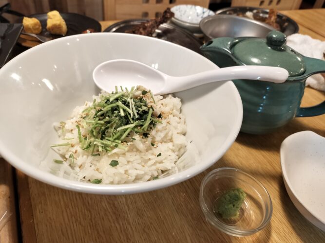 鶏料理のお店に来たのにたい茶漬けかーとも思ったのですが、お茶漬けはほかに鮭と梅の選択肢しかなかったので仕方なく(笑)